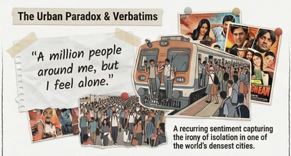 Independent research from Mumbai, cited in the analysis, confirms that living alone is strongly associated with loneliness, with very high odds for solitary household heads compared to those in joint family arrangements. The Times of India has framed it as a growing public health hazard. And yet the city’s response has been essentially nothing. Some mental health apps. Some awareness campaigns. The same Bollywood mythology of the city as the great equalizer, the place where ambition gets rewarded and belonging follows.