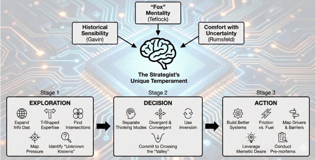 How do they do it? Through disciplined exploration that expands the information diet. Through frameworks that convert chaos into clarity. Through methods that separate divergent exploration from convergent decision-making. Through systems that make strategic behaviour inevitable rather than aspirational.