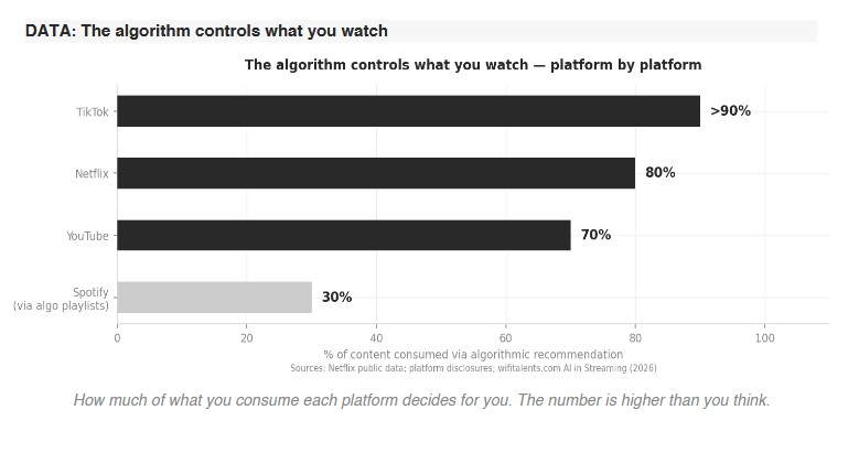 I want to be precise here, because precision matters when the thing you’re diagnosing is invisible by design. This isn’t technophobia. I’m not waving a fist at software. The recommendation engine, this thing humming inside Spotify, YouTube, TikTok, Netflix, inside basically every platform that mediates how culture reaches you, is one of the more elegant engineering achievements of our era. Genuinely. The ability to navigate 100 million songs and surface something that feels like it was waiting specifically for you? That’s remarkable.